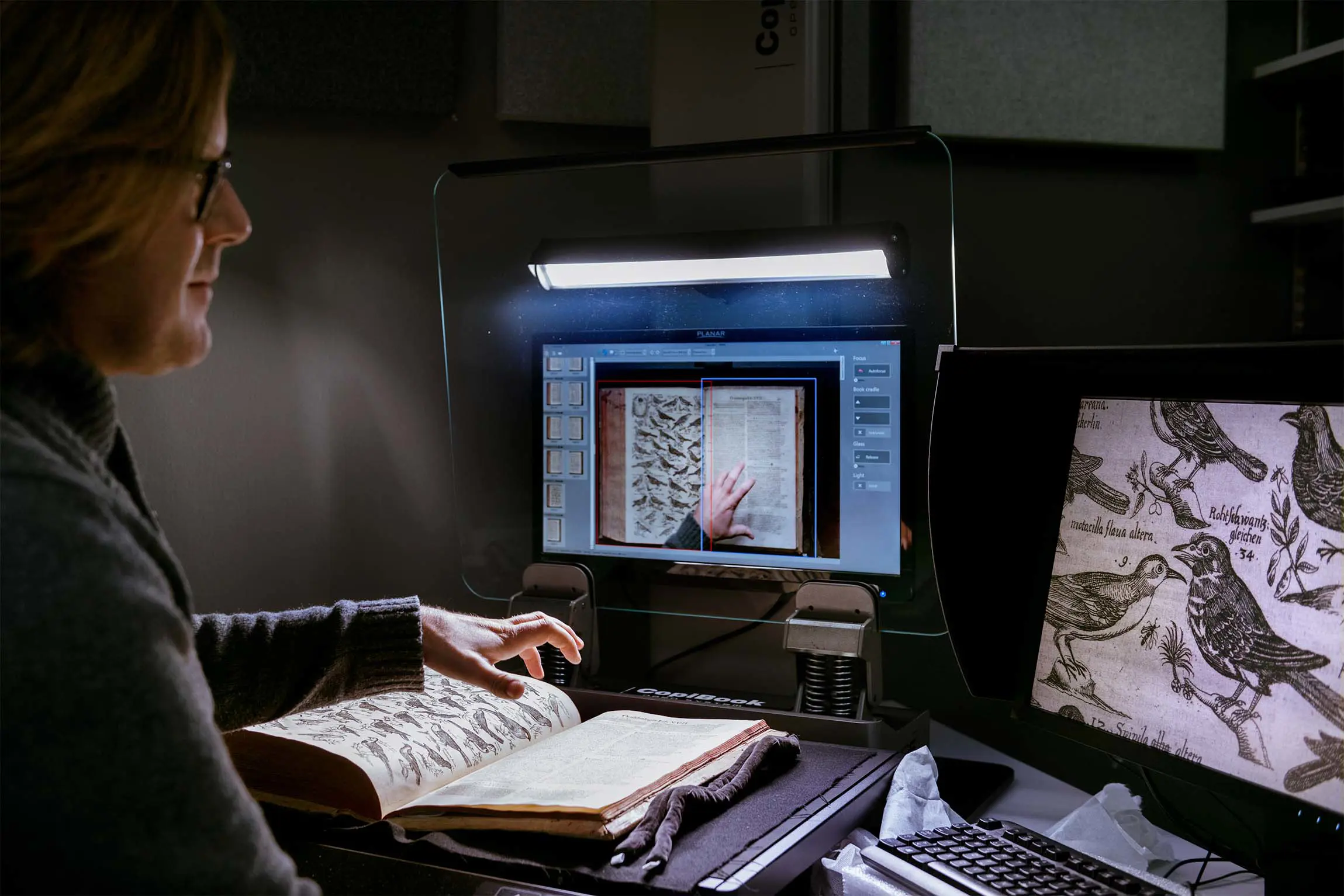 Nere i Carolina Redivivas källare sitter ett team bildtekniker, en fotograf och en bibliotekarie och digitaliserar böcker. Normalt hinner de med 200 000 filer om året. Foto: Urban Jörén