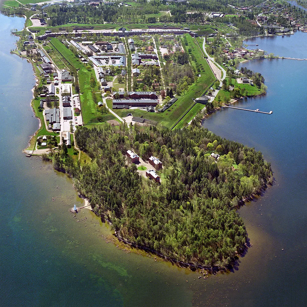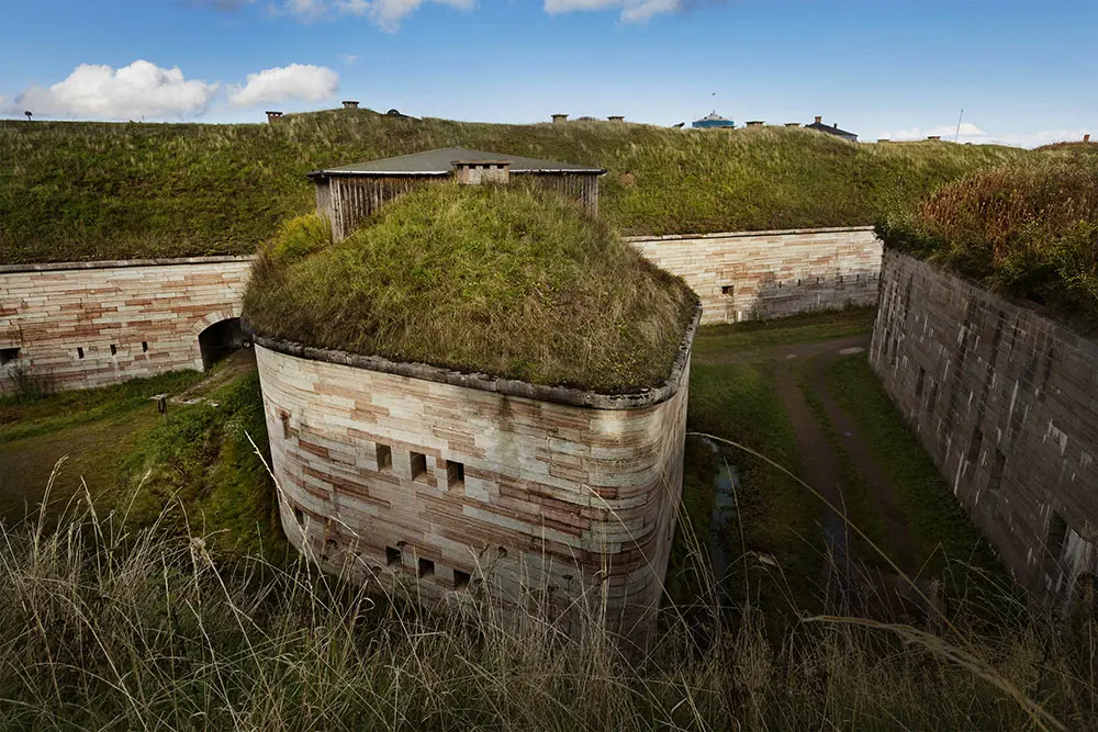 Karlsborgs fästning ligger på Vanäs udde vid Vättern. I det mångfacetterade området finns cirka 170 byggnader. Foto: Megabild