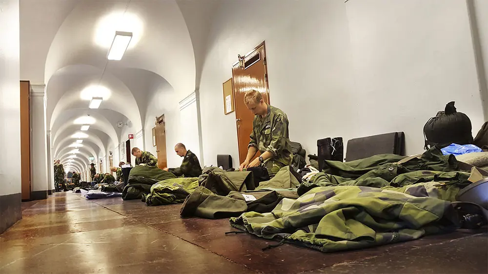 Rekryter under arbete i ett av logementen i slutvärnet. Foto: Fredrik Lilliestråle Stéen