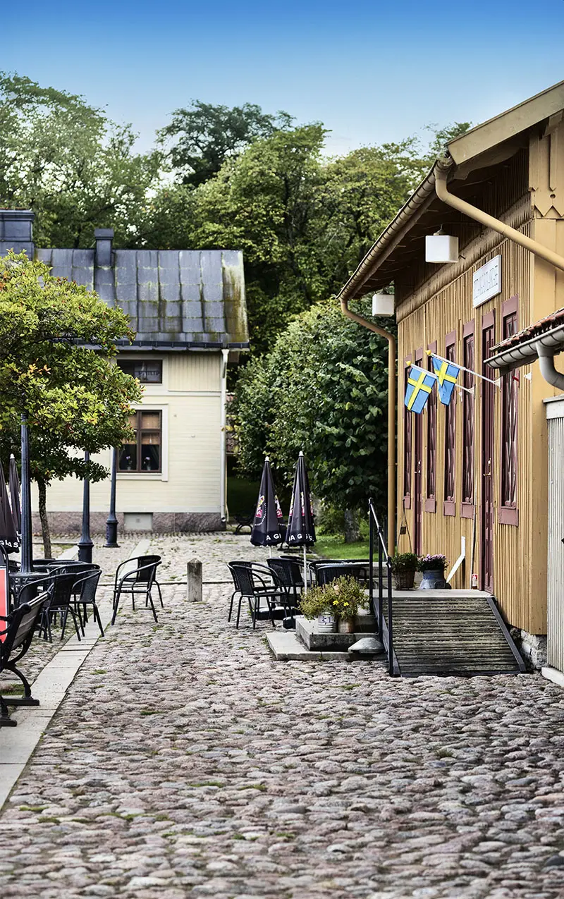 Fästningstorget ser ut som en vanlig civil mötesplats med glasskafé och butiker. Foto: Melker Dahlstrand