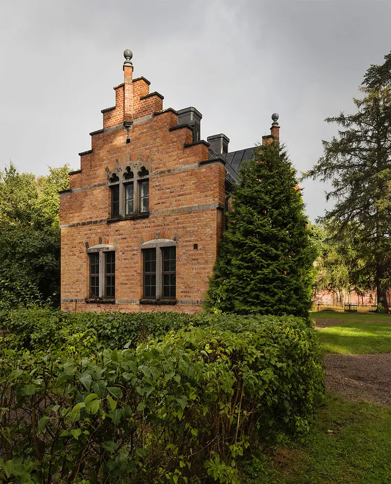 Minörskolan från 1890-talet präglas av en medeltidsromantisk stil. Här fanns lektionssalar och laboratorium för soldater som skulle utföra spränguppdrag. Foto: Melker Dahlstrand