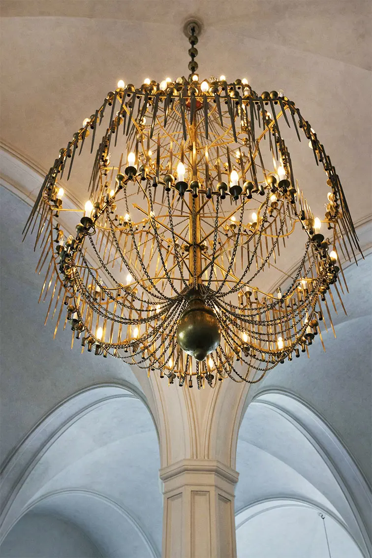 Garnisonskyrkan präglas av den ståtliga takkronan som är formad av 276 bajonetter. Foto: Melker Dahlstrand