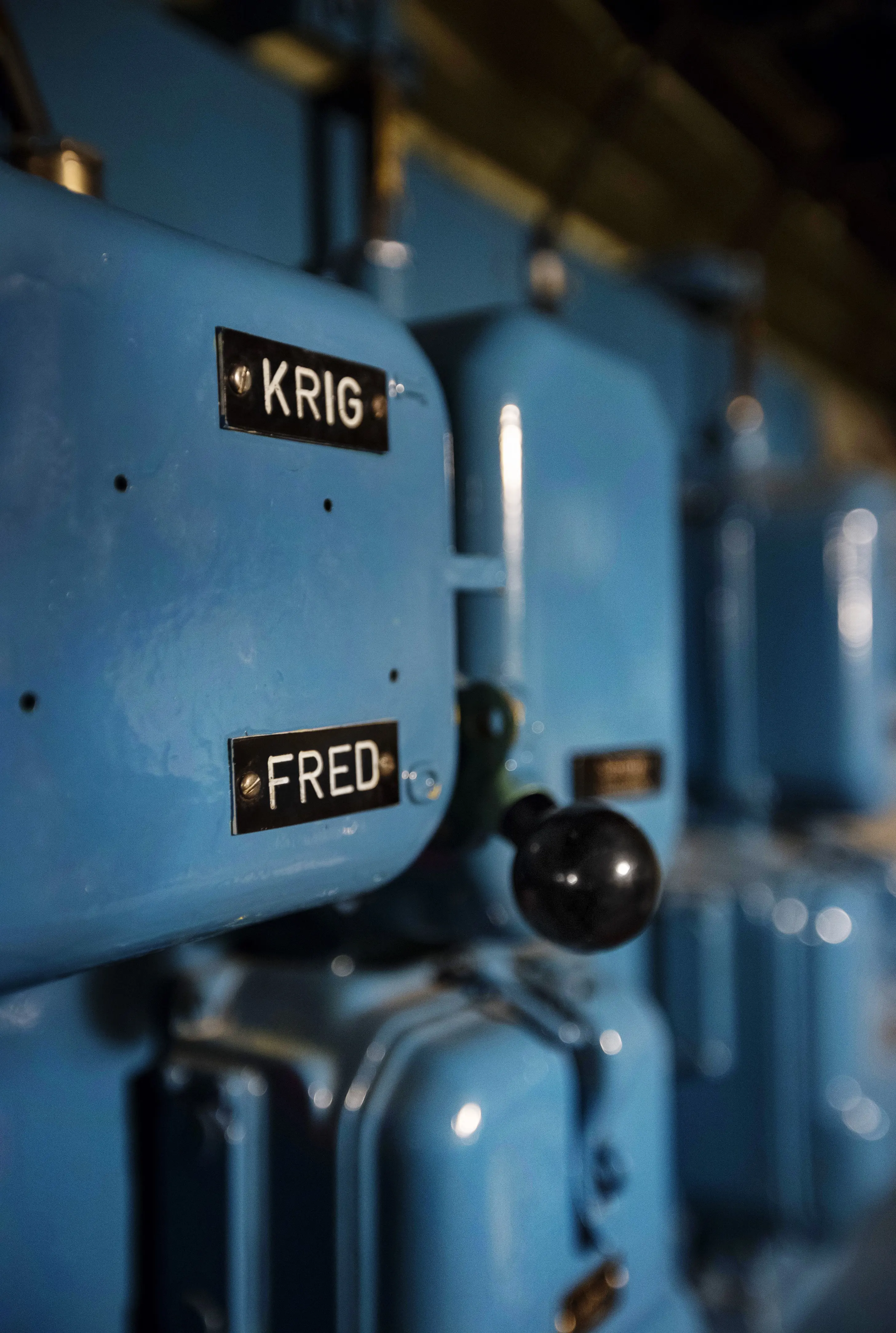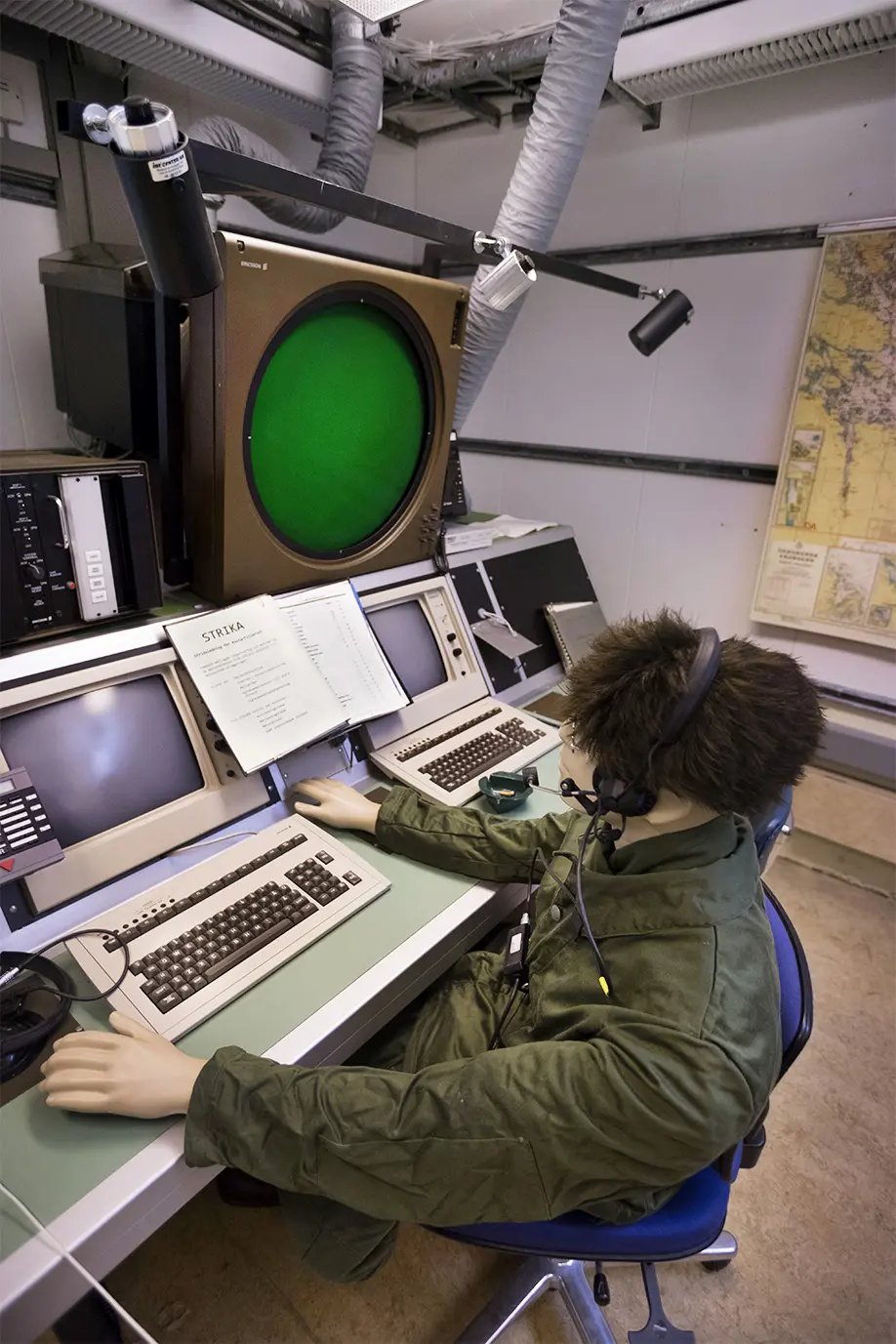 Vi fortsätter färden genom det märkliga museet: köket med kantinen, stridsledningscentralen med radarskärmar och maskinrummet, vars dieselaggregat kunde försörja hela anläggningen i en månad utan kontakt med omvärlden. Det är en hel liten värld där totalt 110 personer skulle kunna jobba och bo. Logementen är trånga, med trevåningssängar staplade bredvid i varandra med minimalt utrymme emellan. Bara batterichefen fick eget rum, mycket spartanskt dock.