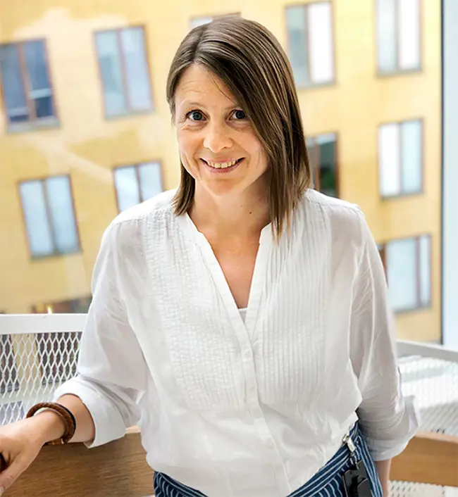 Linda Klementsson, som är chef för museet i Gamla Uppsala, blickar ut över landskapet.
