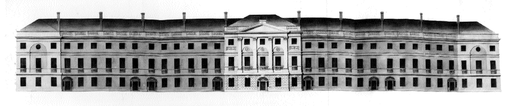James Adams ritning till huslängan vid Portland Place. Nummer 27 ligger längst till vänster.