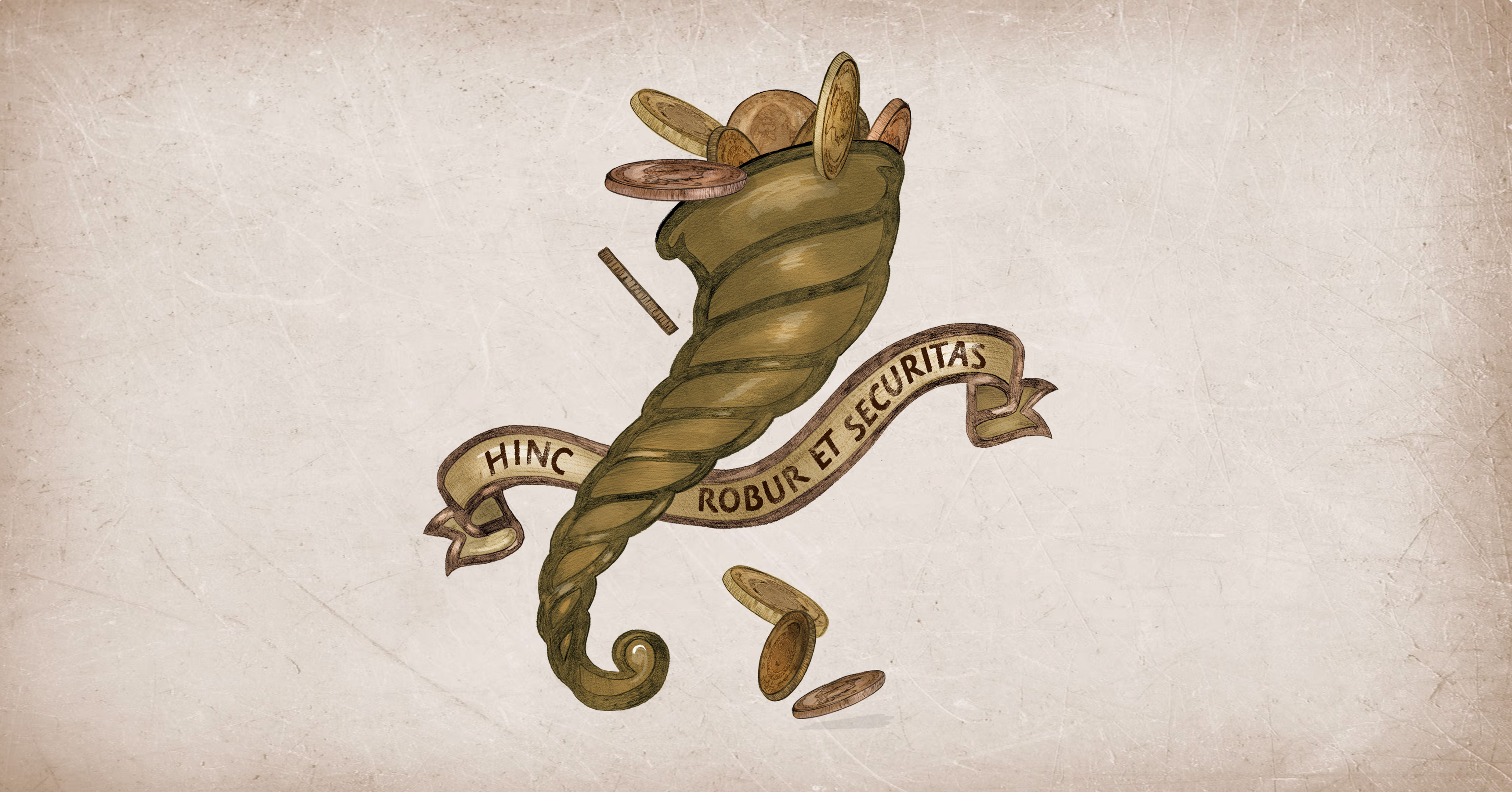 Nu är han äntligen inne i byggnaden fast det är inte mycket varmare här än utomhus. Ett fyrfat brinner på golvet i hörnet, men vinterkylan har bitit sig fast i stenväggarna. Huttrande ser han sig om i dunklet. Till vänster ligger den nedre expeditionen. Dörren dit in i är krönt av vackra putsdekorer i form av en pilgrimssnäcka och en präktig kartusch. Några kassörer skymtar i skenet från talgljusen. Vilka arbetsmyror! Stålhammar nickar mot bokhållaren som ser upp från en räkneoperation på Abacus-brädet.