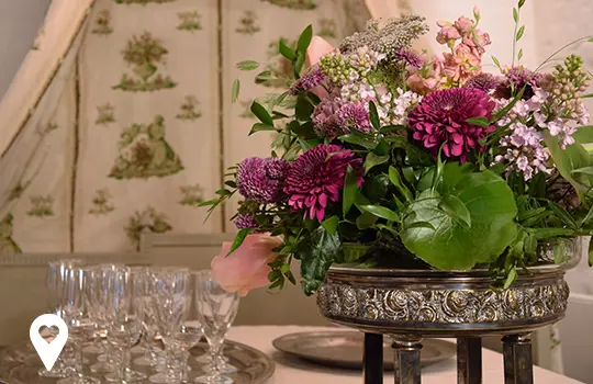 På Vadsbo museum har vi byggt upp ett rum med en känsla av de fina salonger som en gång fanns på Residenset och här kan ni välja att hålla er ceremoni. Det finns plats för en handfull gäster och ni bokar rummet kostnadfritt.