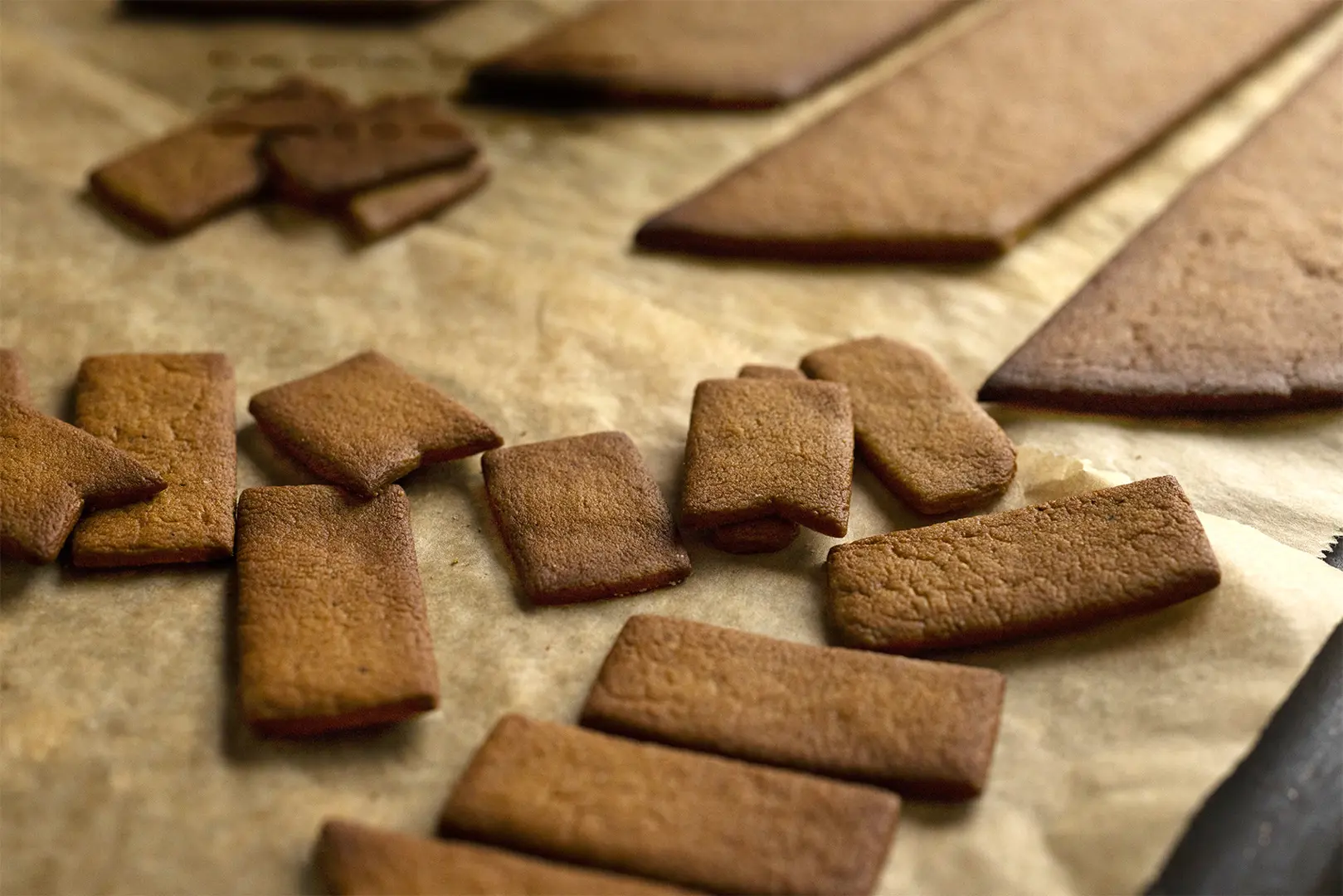 3. Om husdelarna flyter ut eller på annat vis ändrar form under gräddningen, så kan du justera dem med en kniv precis efter gräddning. Avsvalnade kakor kan filas till med ett zestjärn.