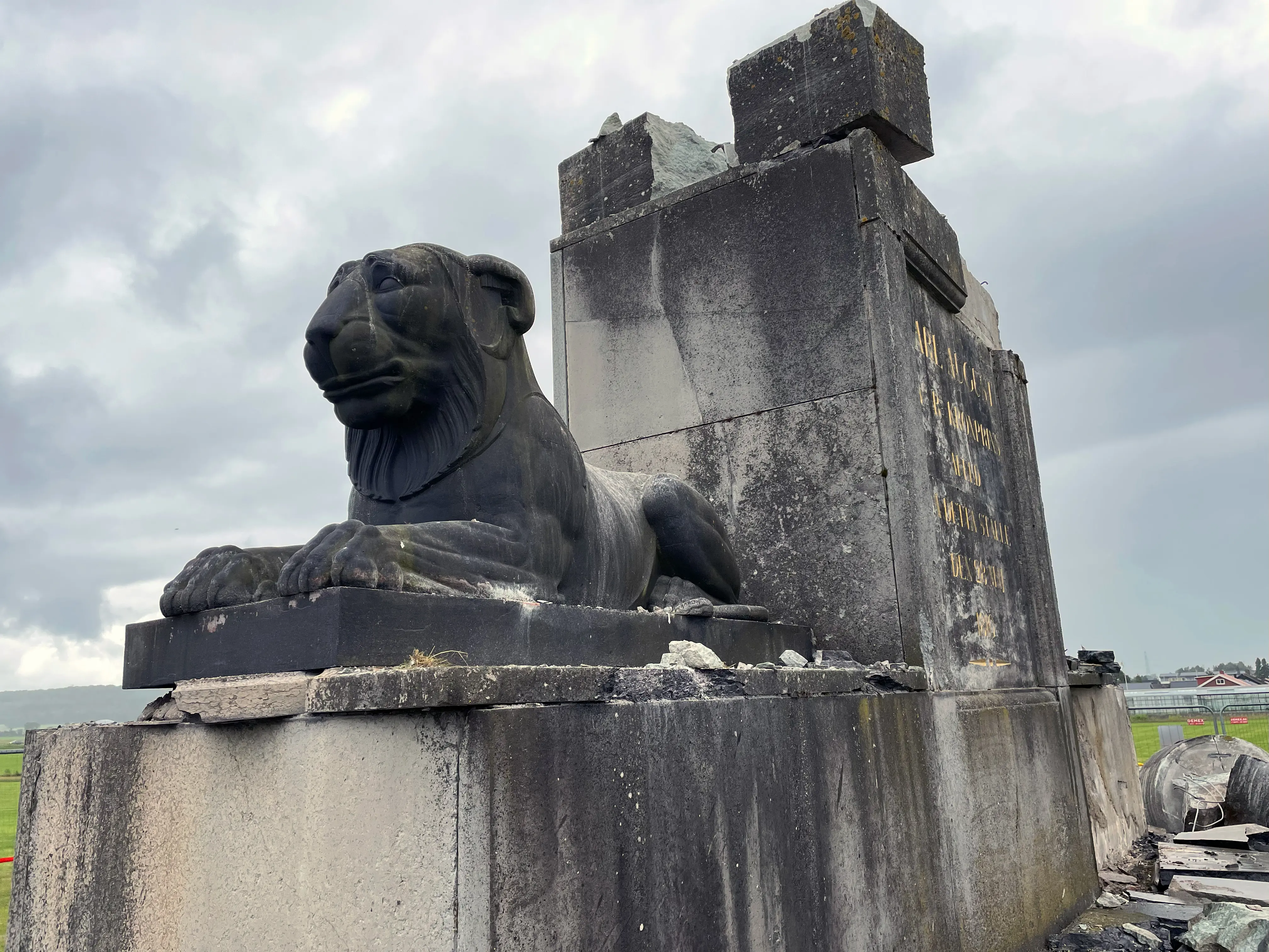 I dag är SFV på plats vid monumentet tillsammans med en stenkonservator. Nu fortgår arbetet med att säkra platsen och undersöka hur omfattande skadorna är på stenen och de gjutna lejonen.