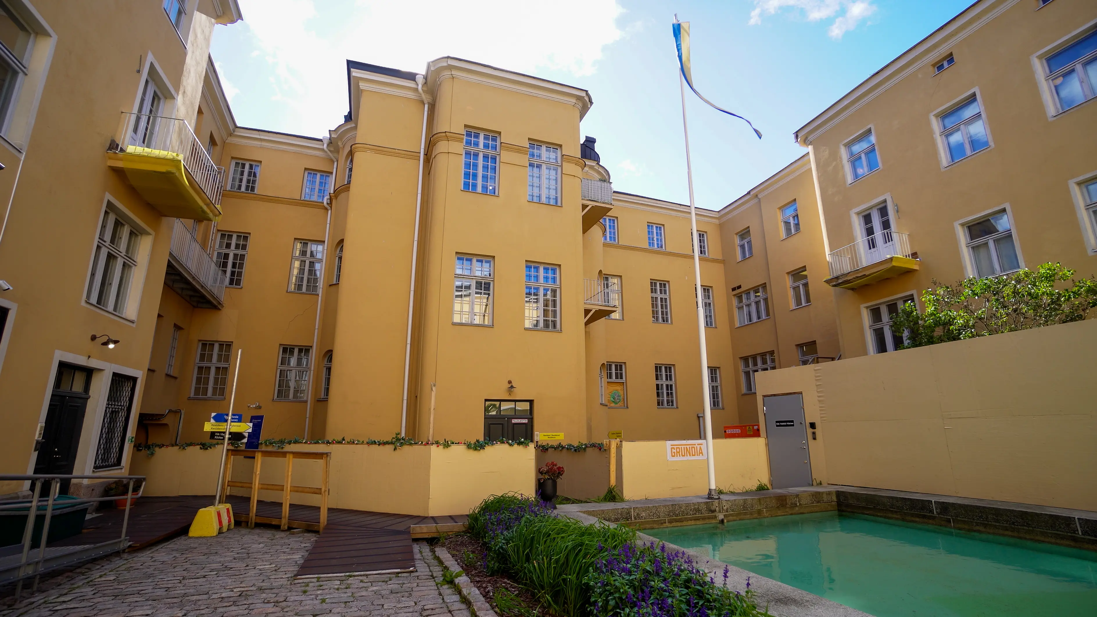Efter att den omfattande grundförstärkningen och lokalanpassningen av svenska ambassadbyggnadens huvuddel färdigställdes hösten 2025 går projektet nu vidare in i sin nästa fas. Med den bärande konstruktionen säkrad fortsätter nu arbetet med att renovera ambassadens huvudbyggnad och tre gårdsflyglar.