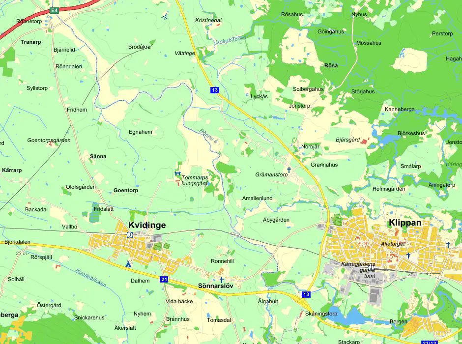 Översiktskarta för den gallrade skogen i Rosersberg.