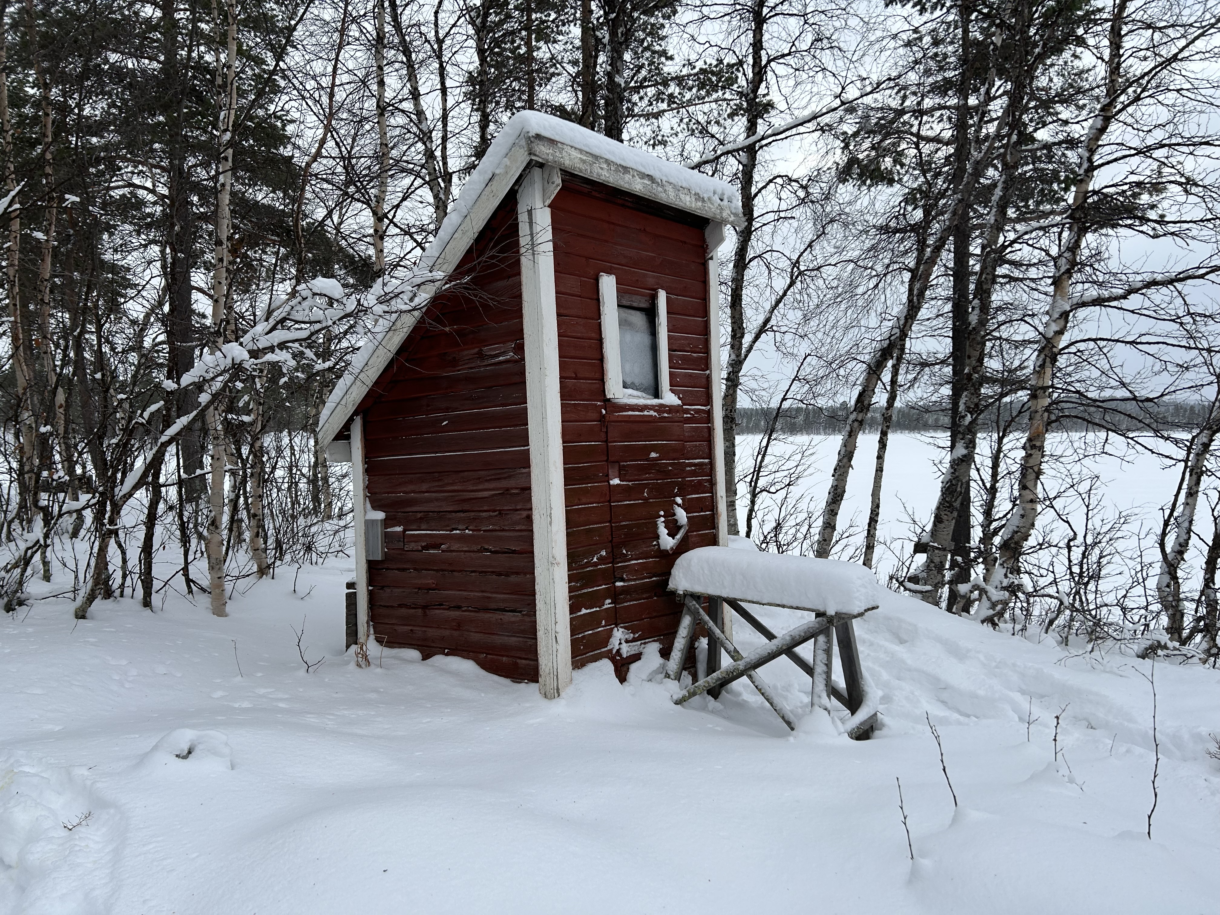 Från riksväg 95 leder en grusväg nästan hela vägen fram till kojan, men den plogas inte vintertid. De sista cirka 250 metrarna får man promenera.