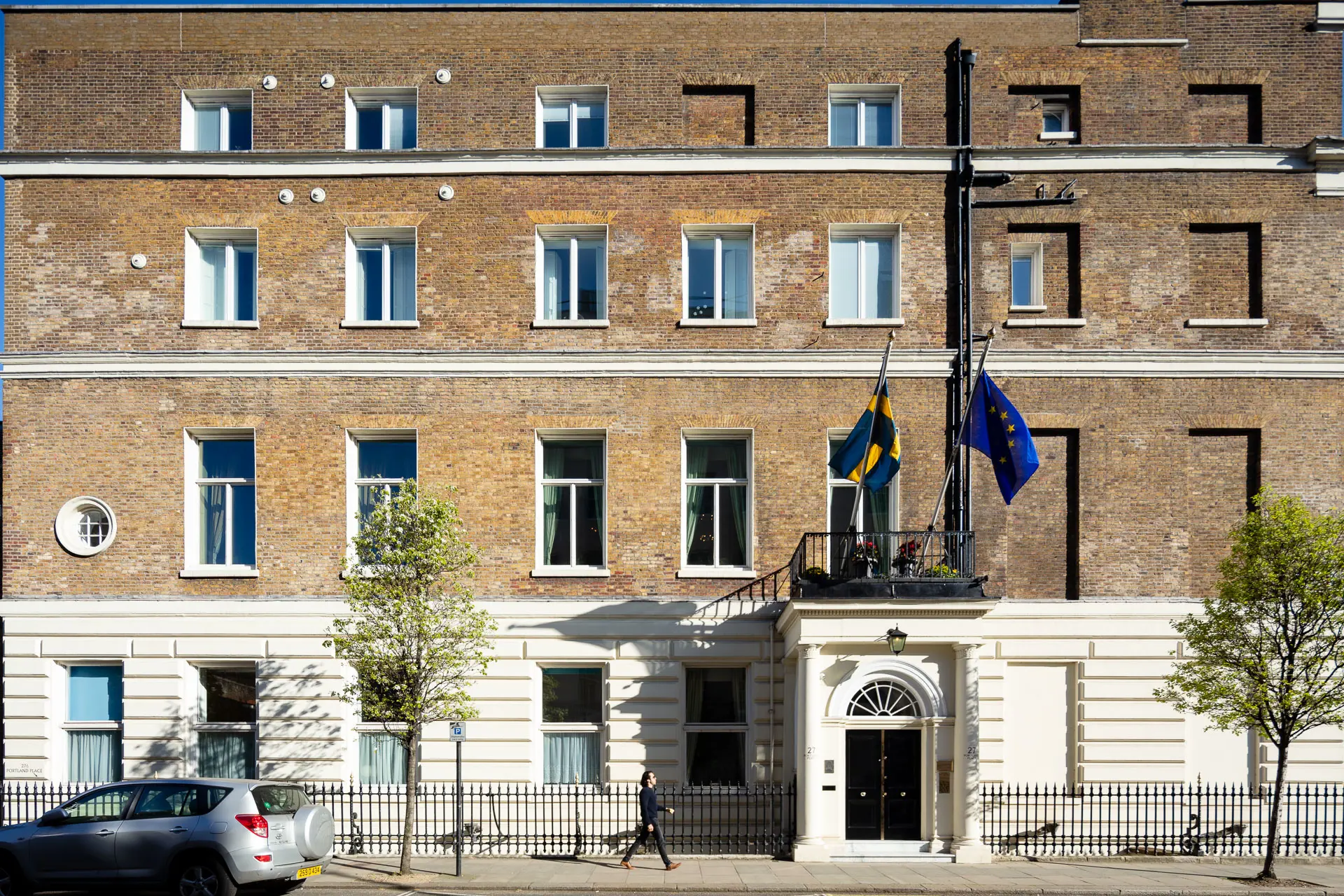 För hundra år sedan skapades ett stycke Sverige på brittisk mark. Allt sedan dess har Portland Place 27 varit en del av svenska ambassaden i London. Sedan kansliverksamheten flyttat är det nu ambassadörens bostad och platsen för svensk representation i Storbritannien. Som symbol för kontakten mellan Sverige och Storbritannien har den därför ett mycket stort värde.