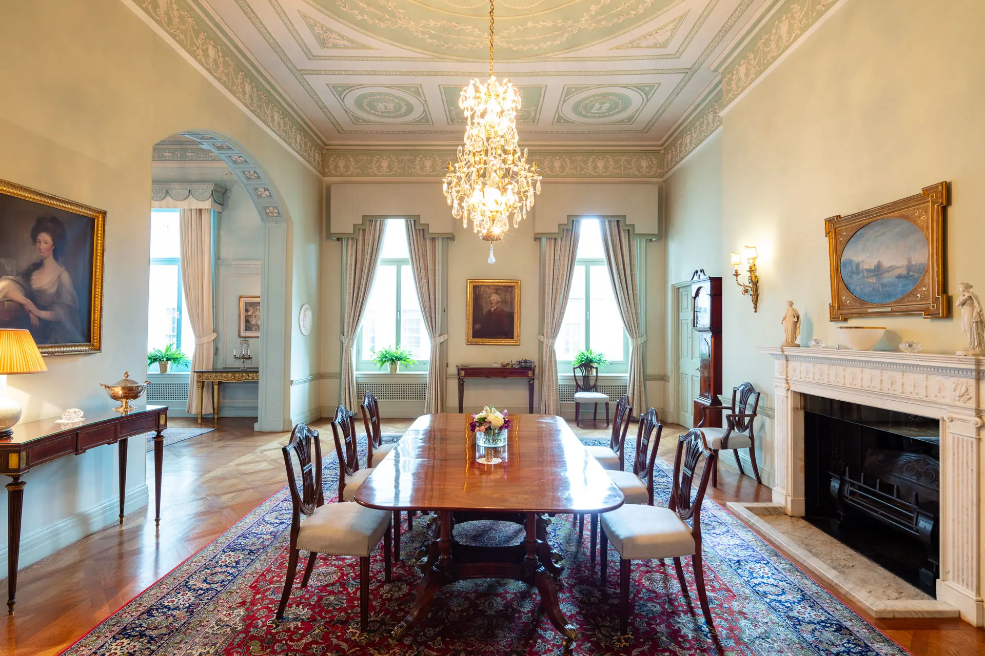 Det tredje rummet i Adams rumssvit avsågs efter ombyggnaden 1921 att användas som det finaste gästrummet, bland annat för den svenska kungafamiljen som ofta gästade London. Rummet är ytterligare ett exempel på hur Torben Grut transformerade bröderna Adams nyklassicism. Genom färgundersökningar i form av stickprov gjorda 2010 har man belägg för förenklad färgsättning i galleriet, gula salongen och dagens matsal. I brittisk press rapporterar man intresserat om inredningen av det kungliga gästrummet 1921 – om det enkla huvudtemat med sina vita väggar och förgyllda detaljer i rummet. Om ljusa dyrbara brokadtyger på möbler i kontrast till någon enstaka möbel av mörk skuren ek och en stor persisk matta. Samt en eller två av baron Palmstiernas ärvda släktklenoder.