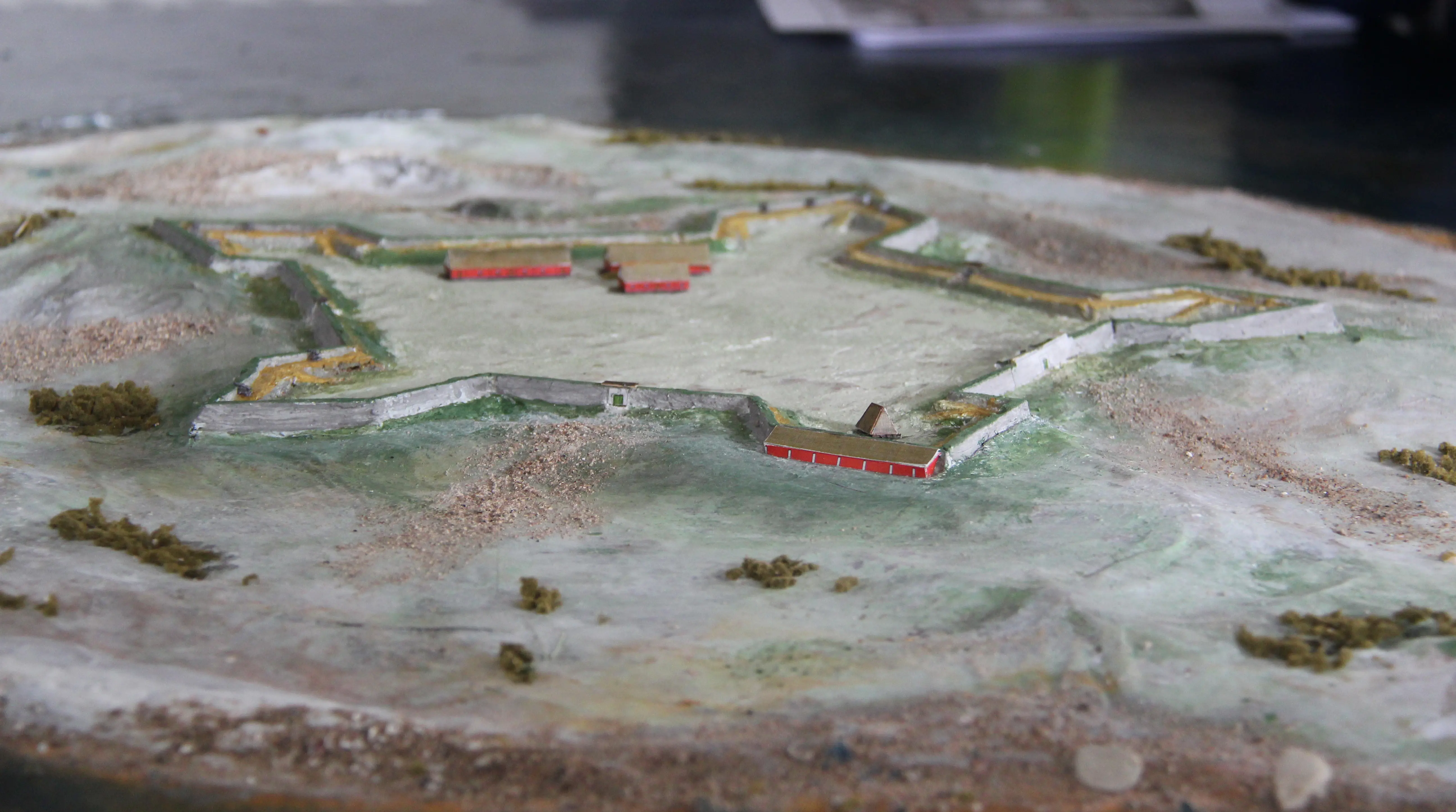 I stugan vid stranden finns ritningar och en modell av hur fästningen en gång sett ut.