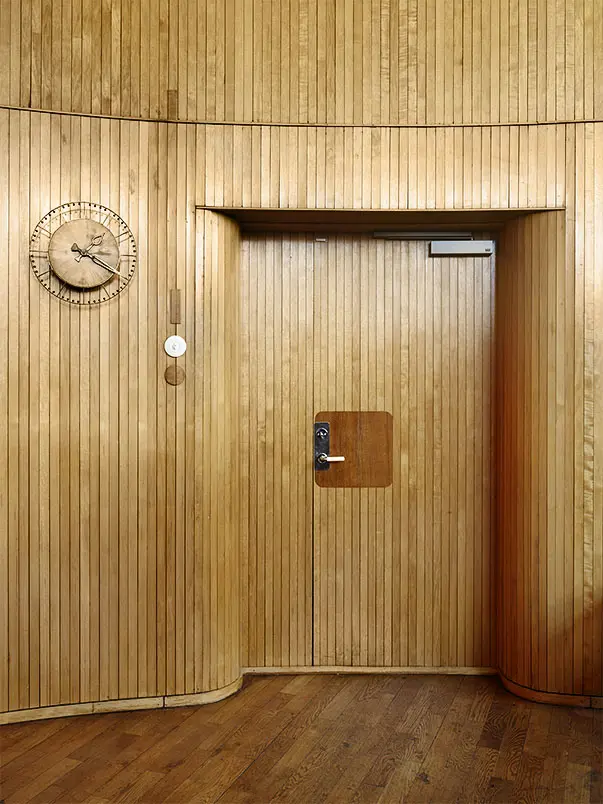 De varma och mjuka linjerna går igenom i trappdetaljer, i de specialritade möblerna som fortfarande står kvar och i de subtila armaturlösningarna. Ner i minsta detalj finns en genomgående tanke som lyser igenom. Men för arkitekterna kunde det ofta bli svåra avvägningar mellan att modernisera och värna kulturarvet. Hur gör man till exempel med den unika spiraltrappan med för låga räcken och för långt mellan spjälorna jämfört med dagens krav? Lösningen: en varningsskylt med hänvisning till andra trappor i lokalen.