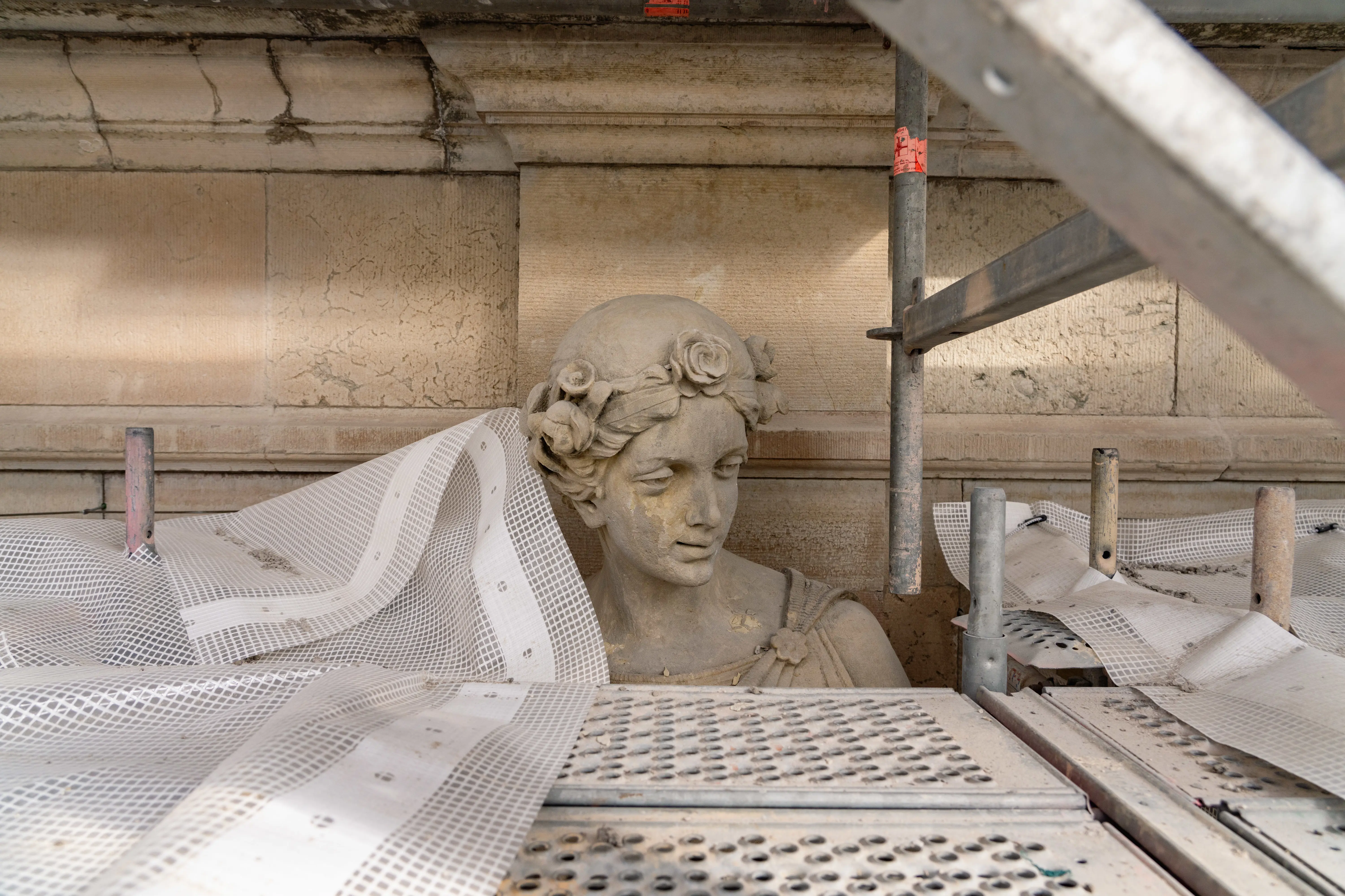 I det pågående projektet säkrar SFV byggnadens fasader med dess figurer och skulpterad dekor från att falla sönder ytterligare och tillvaratar konstnärliga, arkitektoniska och kulturhistoriska värden. Arbetet genomförs på ett energieffektivt sätt både vad gäller påverkan på klimat och miljö samt kostnader. Skadade stenar tas ned och ersättas med nya. Putsen renoveras och omfärgas. Taket genomgår samtidigt en renovering.