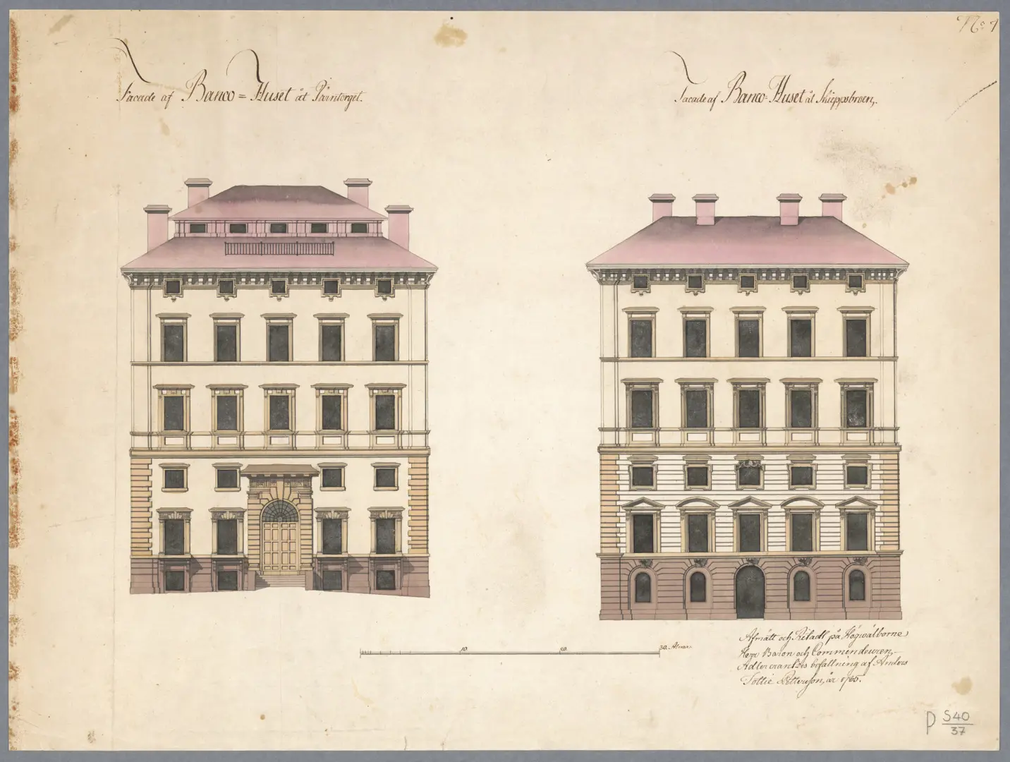 Uppmätningsritning av fasad mot Norra Bankogränd, 1780-tal. Foto: Riksarkivet