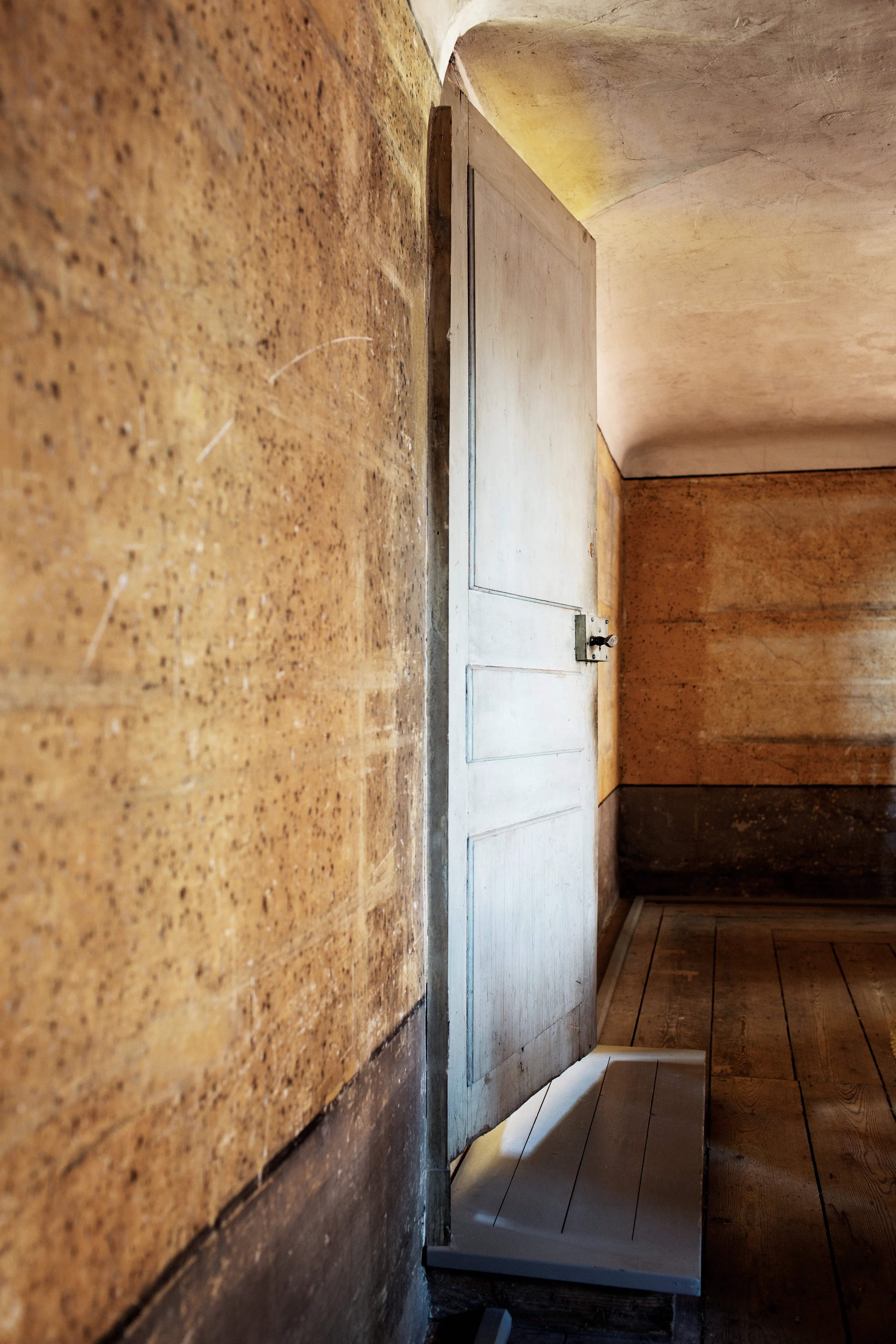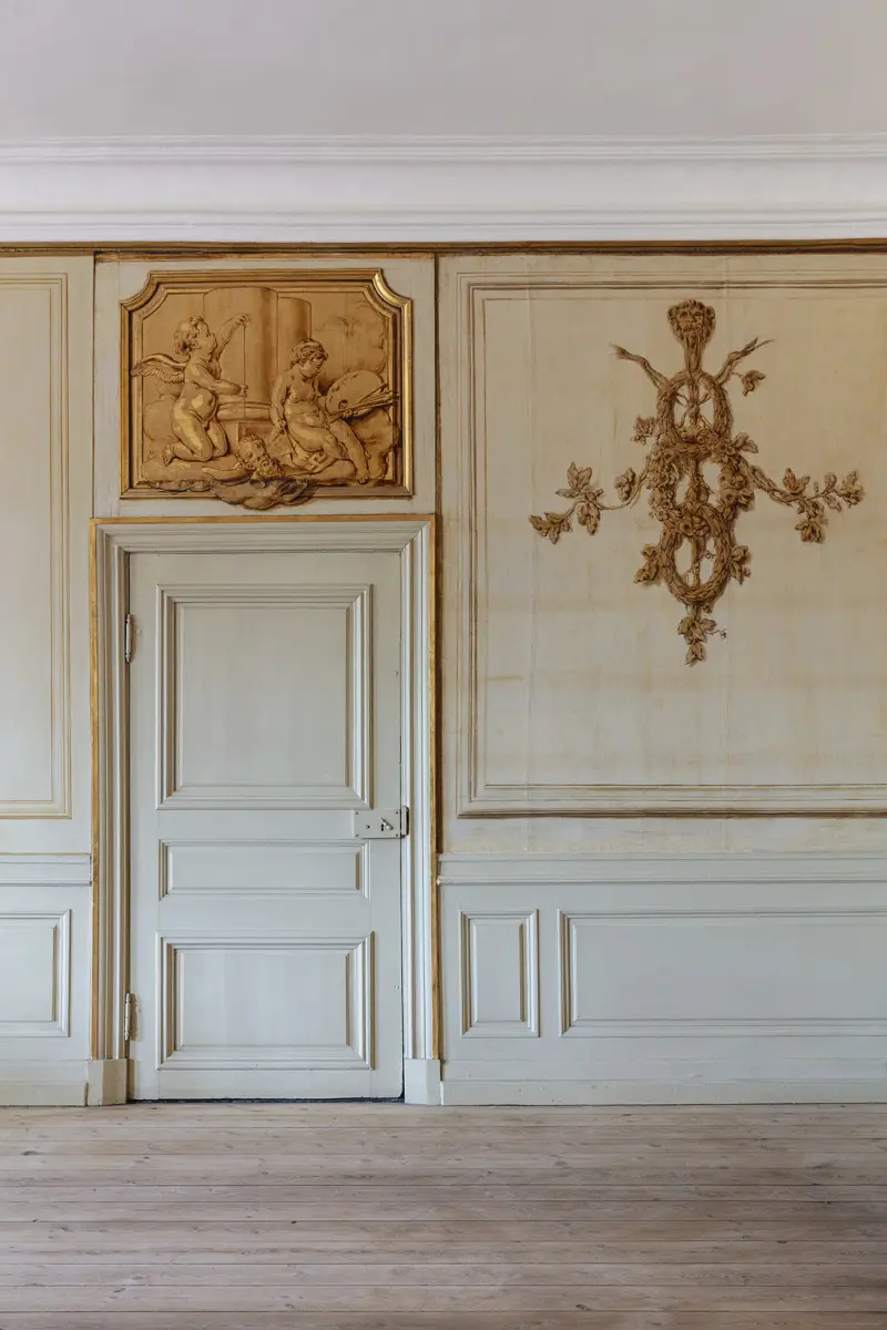Dörröverstycke i Sessionssalen med Riksbankens symbol, ett ymnighetshorn. Foto: Sofi Sykfont