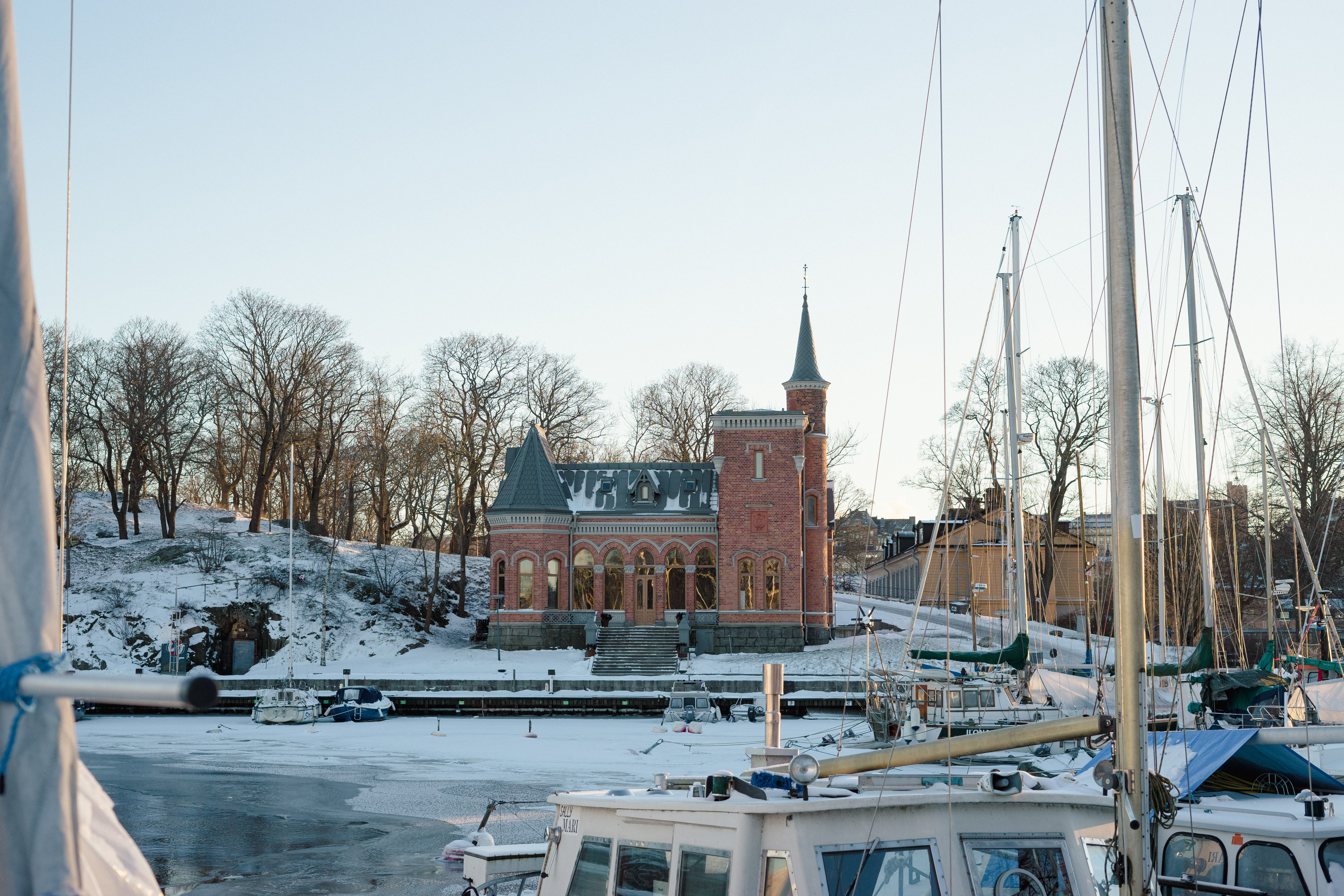 År 1882 lät marinförvaltningen bygga detta klubbhus efter ritningar av arkitekten Adolf Emil Melander - en romantisk liten borg med tinnar och torn, branta takfall och rikt dekorerade tegelmurar. Det var en byggnad uppförd enbart för trivsel och nöje. Kungliga Skridskoklubben upphörde 1901 och paviljongen användes därefter enbart av Kungliga Svenska Segelsällskapet fram till 1919.