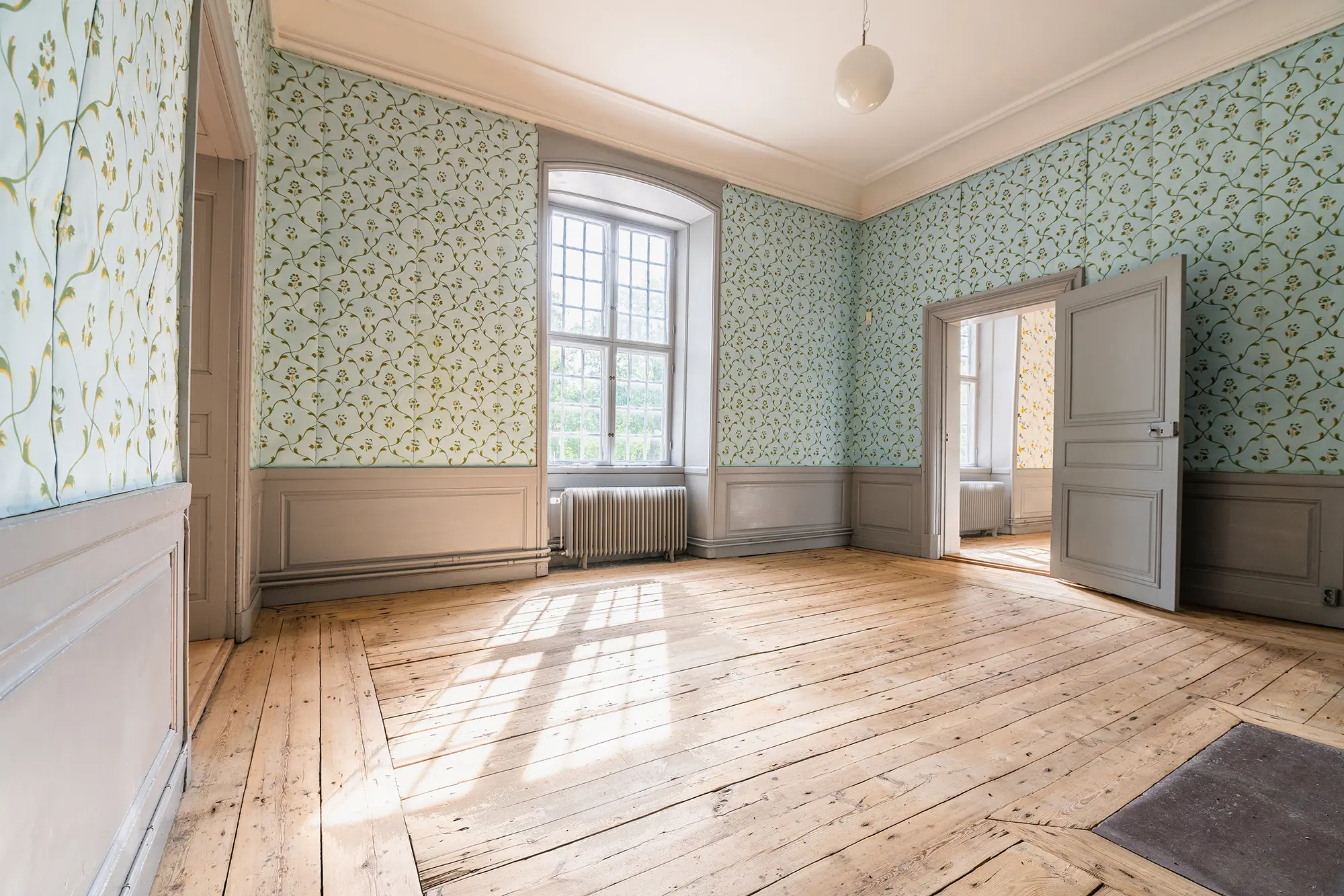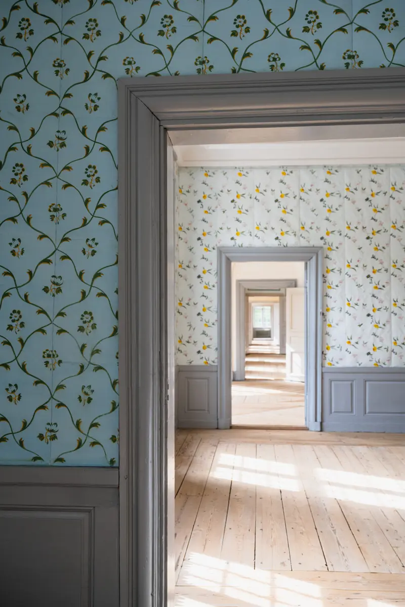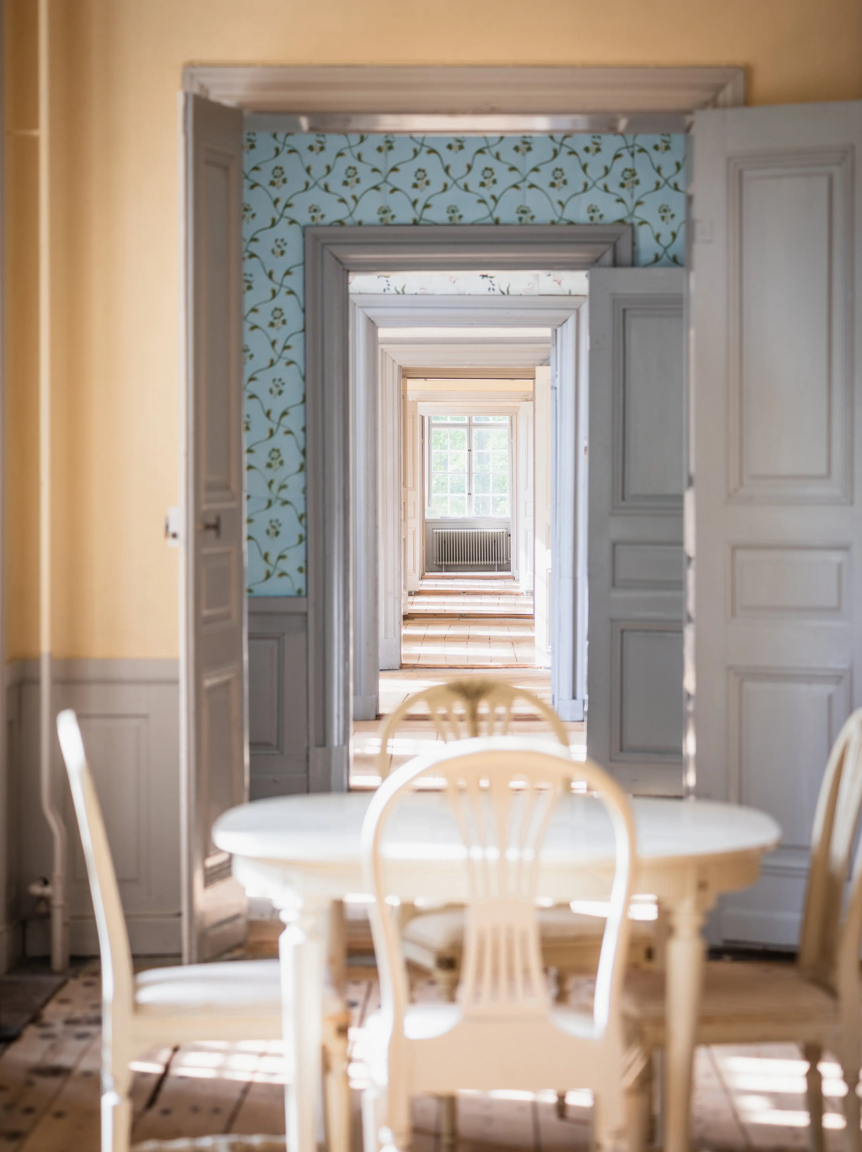 Interiört gjordes en omfattande ansiktslyftning. Bland annat lät Statens fastighetsverk beställa nya tapeter i rokokostil till tolv av slottets rum. Vid tapetrenoveringen hittades ett enda tapetfragment med röda nejlikor, vita små blommor och blå stjälkar. Denna återskapades och hänger nu på övervåningen. Inspiration till nya mönster har även hämtats från andra slott som har bättre bevarade tapeter. Sammanlagt fyra mönster skapades av konstnären Pi Eriksson i samarbete med dåvarande slottsarkitekten Helena Tallius Myhrman.