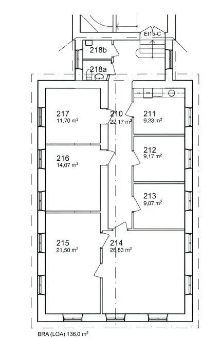 Lokalen som har utsikt i tre väderstreck är totalt ca 136 kvadratmeter och bestående av 7 stycken kontorsrum, ett kök och en mindre wc. Väggarna är målade och på golven är det en heltäckningsmatta. Lokalen har nyligen förstärkts med mekanisk ventilation.