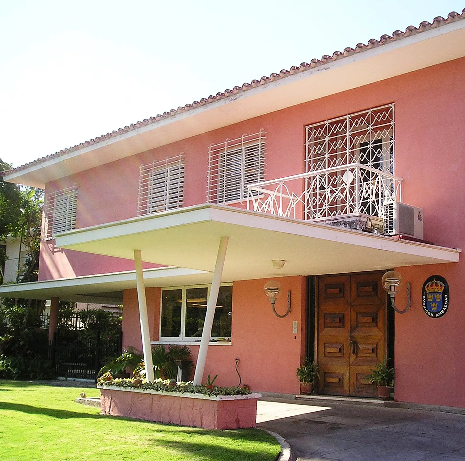Sveriges ambassad i Havanna ligger i en villa i rosaputsat tegel. Byggnaden omfattar två plan. Här inryms kanslilokaler, garagebyggnad och en gästlägenhet.